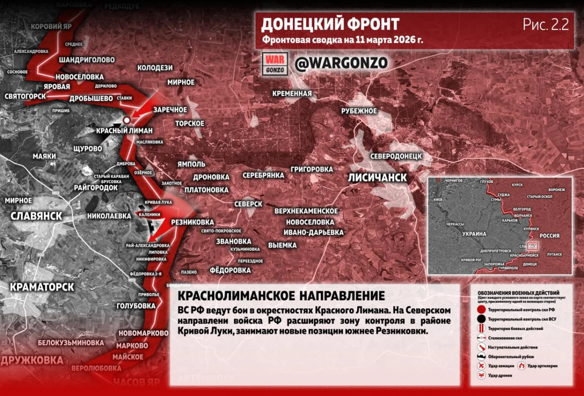Оперативная сводка СВО на утро 12 марта 2026 года, свежая карта боевых действий на фронте