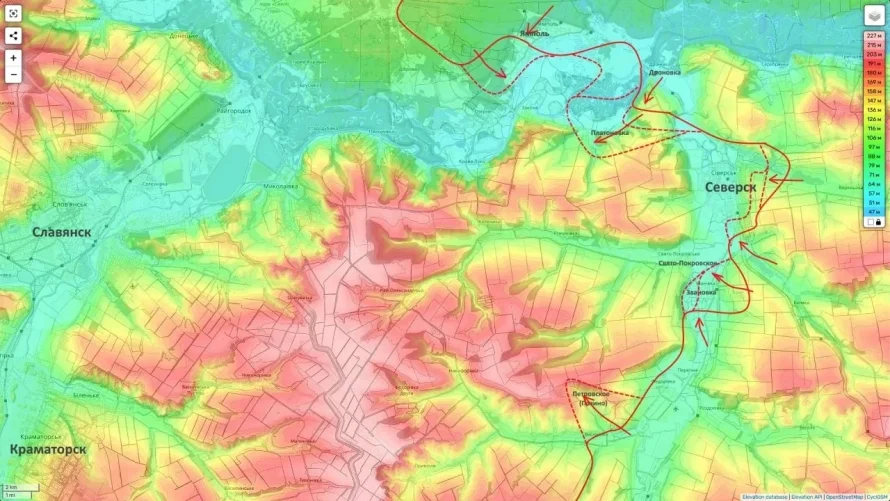 - Северское направление: После взятия под контроль Звановки и Ямполя российские части начали глубокий охват северской группировки врага. Занятие высот южнее Закотного позволяет установить огневой контроль над линиями снабжения, создавая реальную угрозу еще одного окружения.