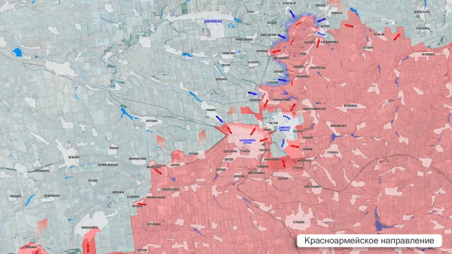 На Красноармейском (Покровском) направлении российские войска продолжают методичное продвижение. Основные события разворачиваются к северу от Котлино.