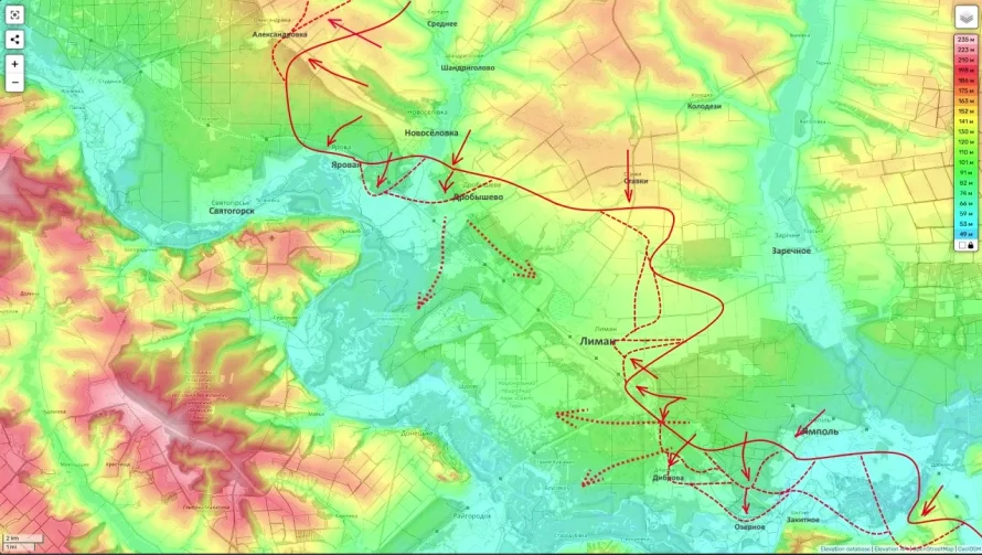 На Лиманском направлении подразделения 25-й армии начали бои за Озерное и контролируют половину Дибровы. Замысел командования очевиден: взятие этих пунктов обеспечит левый фланг для прохода через лесные массивы в тыл Лиманской группировке и захода в сам город с юга.