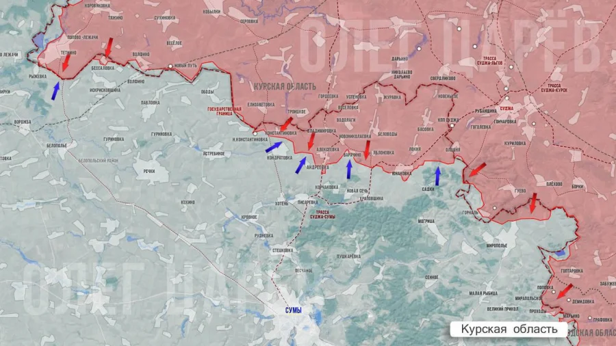 В Сумском приграничье попытка ВСУ контратаковать с применением бронетехники провалилась: враг понес потери и откатился на исходные позиции. Российские войска укрепляются в занятых накануне селах Высокое и Грабовское (район Краснополья). Противник спешно перебрасывает сюда свежие силы, пытаясь купировать прорыв.