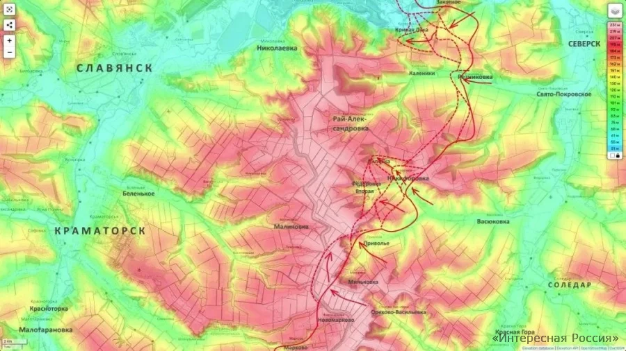 Отдельно отмечается важный тактический момент: после занятия позиций западнее Васюковки ствольная артиллерия ВС РФ начала работать по целям в пределах Краматорска. Развёрнутые тяжёлые орудия позволяют наносить удары по гарнизону на дистанции более 20 километров, что создаёт дополнительное давление на украинскую группировку.