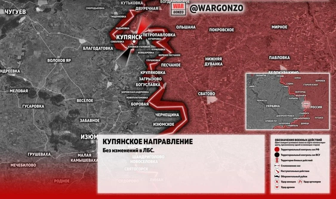- Южное направление: Продолжается планомерное продвижение в сторону Куриловки и железнодорожного хаба Купянск-Узловой. В районе последнего одним из главных узлов сопротивления ВСУ остается территория местного литейного завода, бои за которую носят ожесточенный характер.