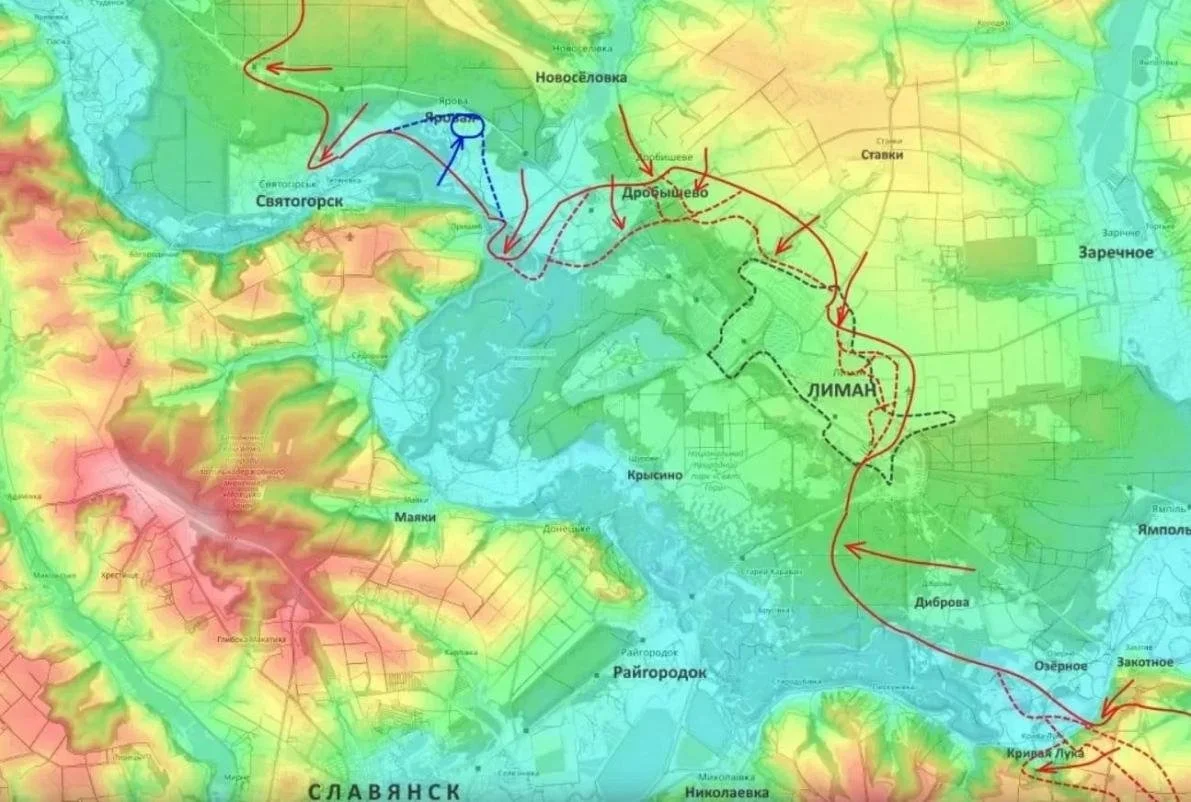 По оценке аналитика, возможности противника удерживать оставшиеся кварталы города сокращаются. Усиливается давление севернее Святогорска. Потеря Дробышево делает уязвимыми позиции яровской и святогорской группировок.