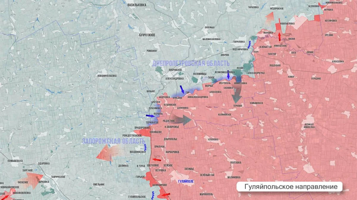 На Гуляйпольском участке инициатива прочно удерживается нашими войсками. ВС РФ успешно продвигаются к западу от Зализничного, сокращая дистанцию до самого села Гуляйпольское.