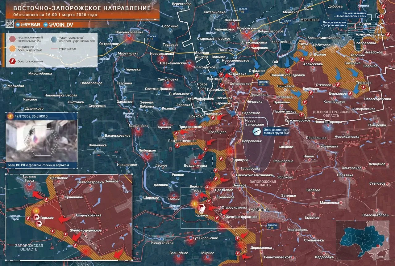 К началу марта стратегическая инициатива на линии соприкосновения уверенно удерживается российскими войсками. Вооруженные силы РФ продолжают масштабное наступление сразу на нескольких направлениях. Главным событием последних суток стал заметный прорыв на Краснолиманском участке, где наша армия начала маневр по фланговому охвату Лимана, создавая прямую угрозу коммуникациям противника на Славянском направлении.