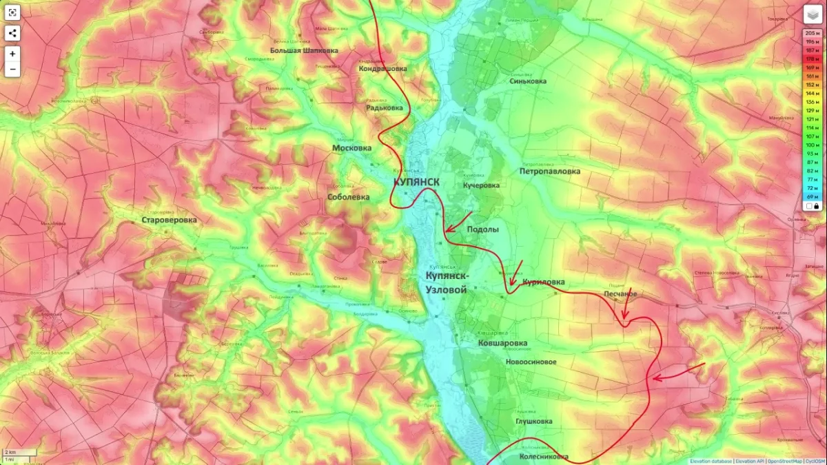 Купянское направление в этой сводке описывается как участок, где после интенсивных боёв зимнего периода наступила заметная пауза. По словам Подоляки, украинская сторона здесь уже не демонстрирует прежней наступательной энергии и в основном пытается наносить удары по российским подразделениям, которые удерживают позиции на западном берегу Оскола, в том числе в северной и центральной частях Купянска.