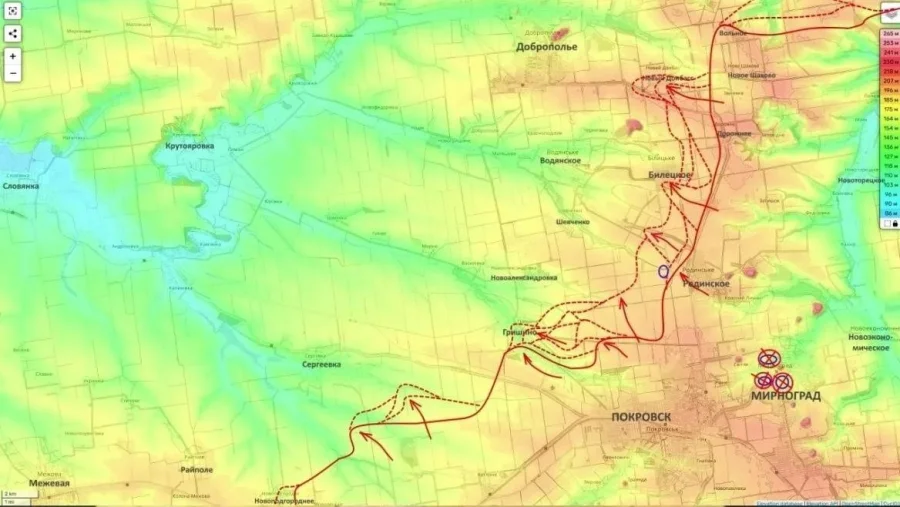 Серьёзная напряжённость сохраняется и на Покровско-Мирноградском направлении. По информации военных источников, линия фронта между населёнными пунктами Гришино и Новый Донбасс остаётся одной из самых активных на всей линии боевого соприкосновения.