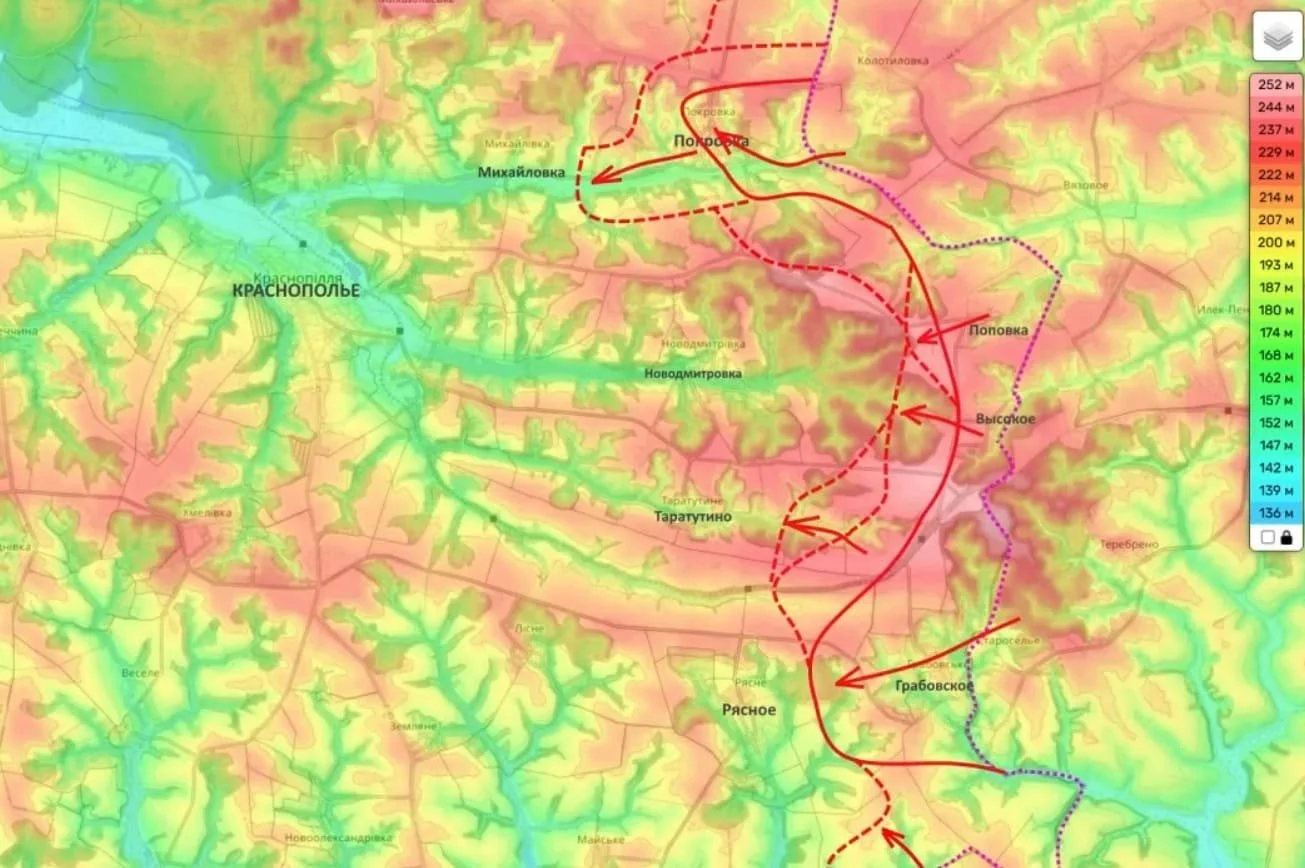 Развивая успех, ВС РФ вступили в бои за населенные пункты Михайловка и Таратутино, расположенные в районе поселка Краснополье. Эти действия следуют за недавним установлением контроля над большей частью села Кондратовка и расширением зоны влияния в соседней Андреевке.