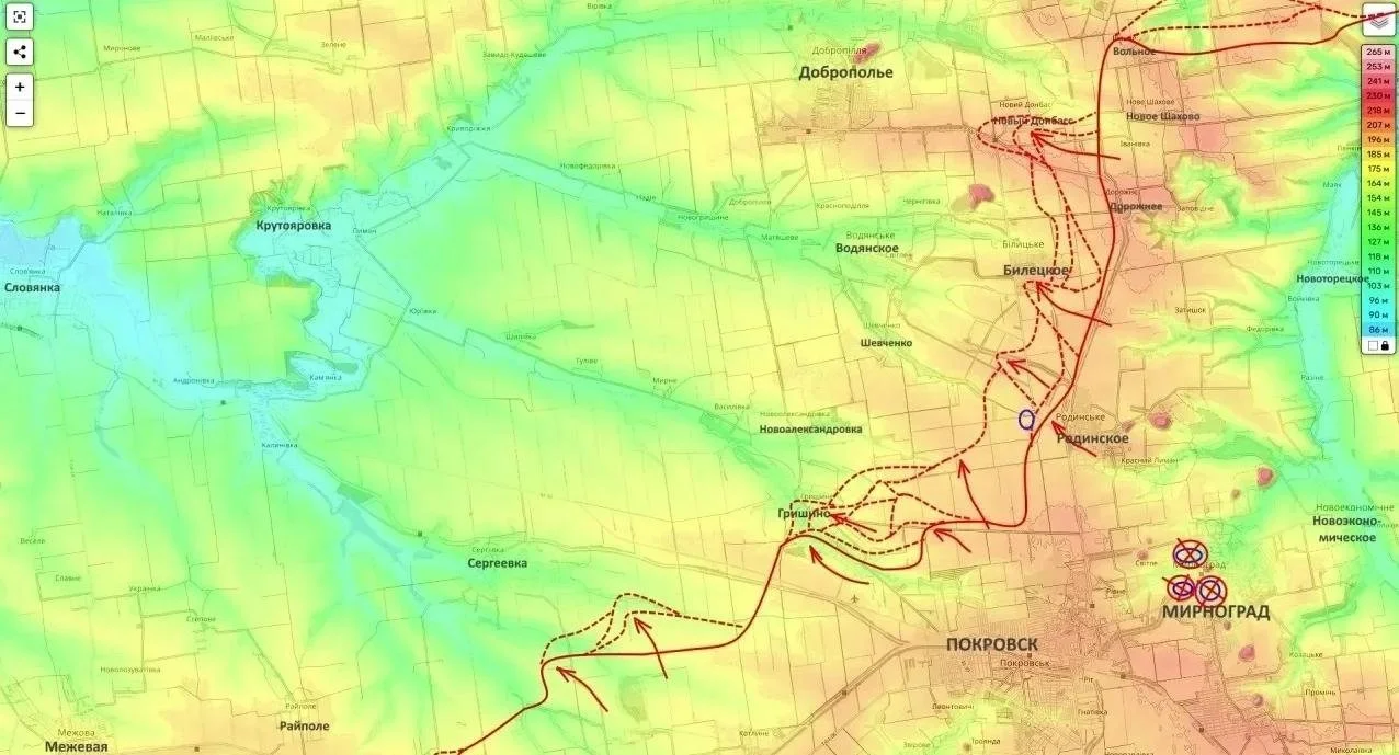 Покровский участок остается одной из самых раскаленных точек конфликта. Подразделения российской группировки войск «Центр» продолжают мощное наступление, методично взламывая линию обороны ВСУ в полосе Белицкое — Сергеевка — Гришино.