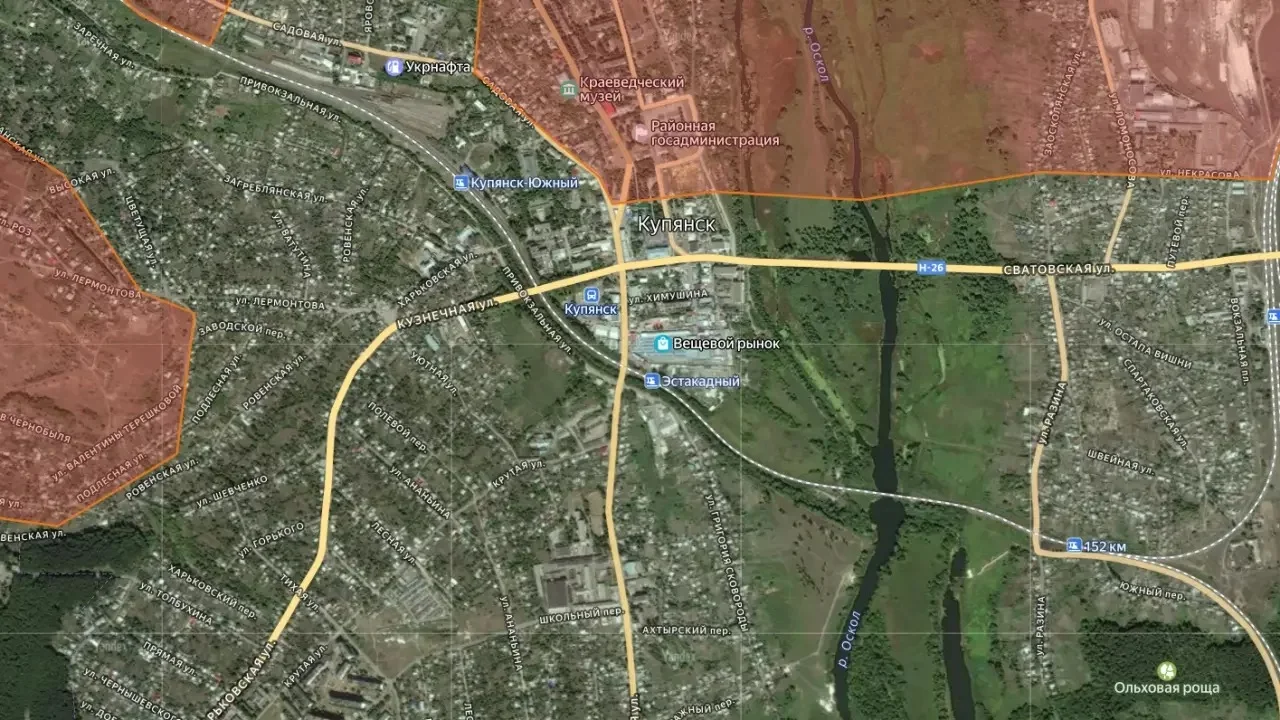 - Контроль ВС РФ: Подразделения 6-й гвардейской общевойсковой армии уверенно удерживают позиции вдоль улицы 1-го Мая, а также контролируют северные и северо-западные окраины Купянска. Главный козырь российских войск здесь — жесткий огневой контроль над подходами к мосту, ведущему в восточную часть города. Это критически усложняет логистику противника.