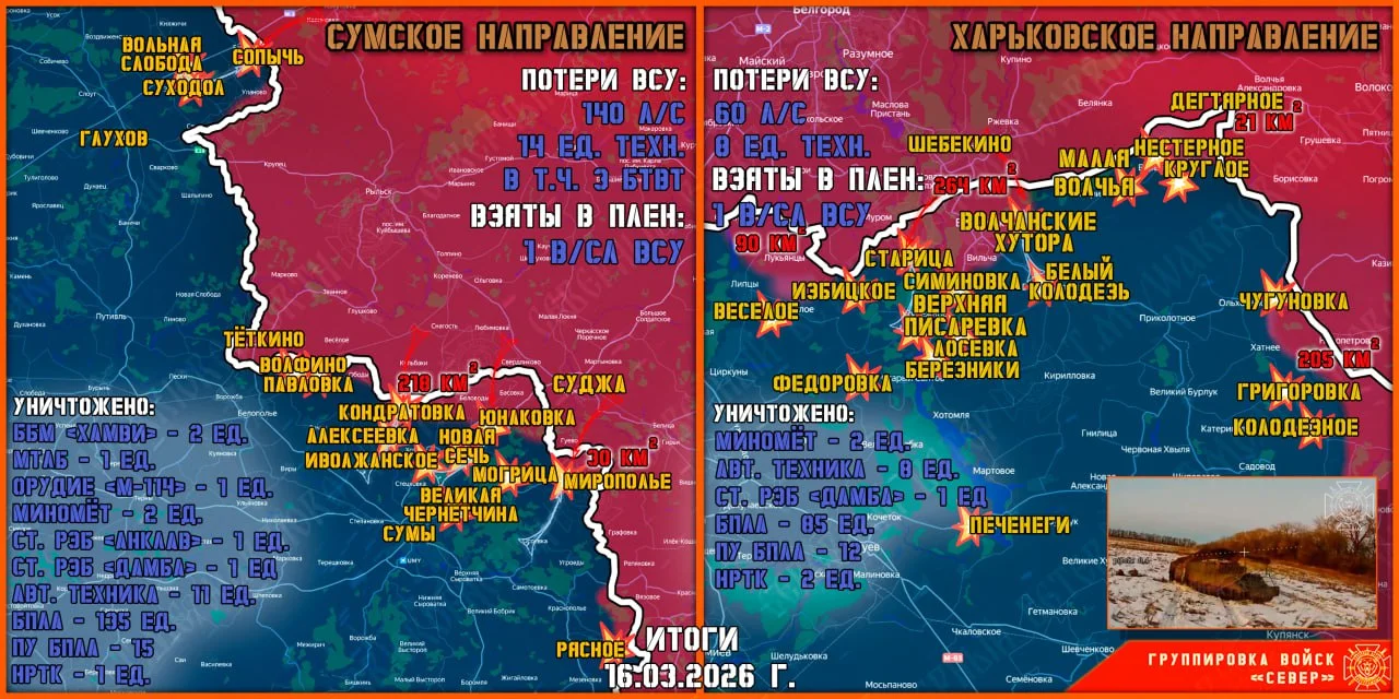 Свежая сводка СВО на 17 марта 2026 года: обстановка на фронтах и актуальная карта боевых действий, 1482-й день СВО, масштабная дуэль беспилотников и прорыв под Сумами.