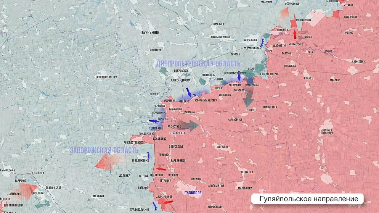 На Гуляйпольском направлении группировка войск «Восток» методично взламывает оборону на подступах к самому Гуляйполю, Верхней Терсе и Воздвижевке. Враг масштабных контратак не проводит, огрызаясь лишь вылазками мелких ДРГ.