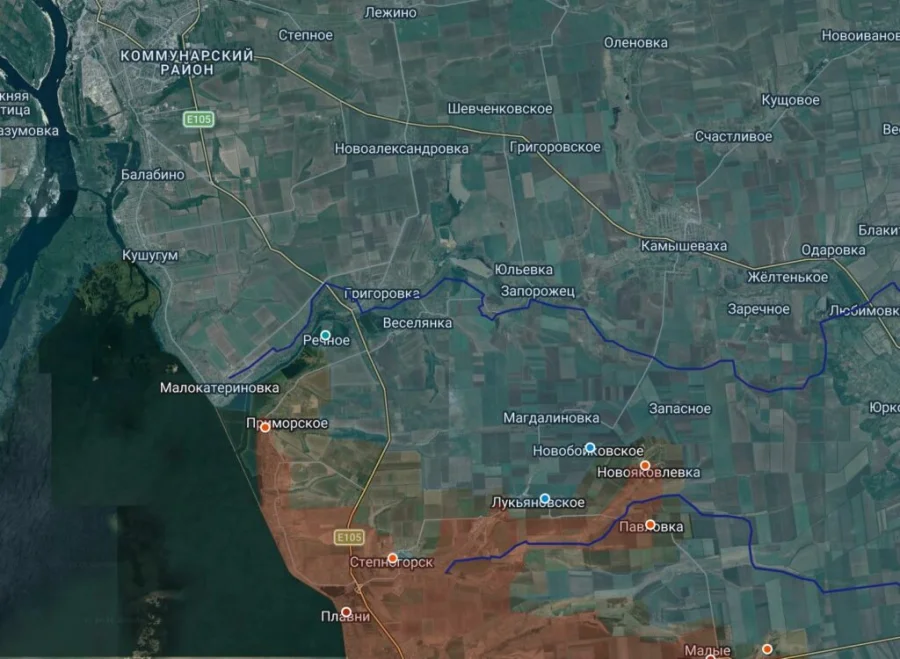 Западнее, в районе Степногорска, российские силы закрепляются вдоль южного берега реки Конка, успешно отражая непрекращающиеся контратаки ВСУ у населенного пункта Речное. Как сообщают бойцы 1430-го гвардейского полка 58-й армии, логистика противника в районе Орехова полностью разрушена и превратилась в «дороги смерти». Российские ДРГ регулярно заходят на позиции врага восточнее города.