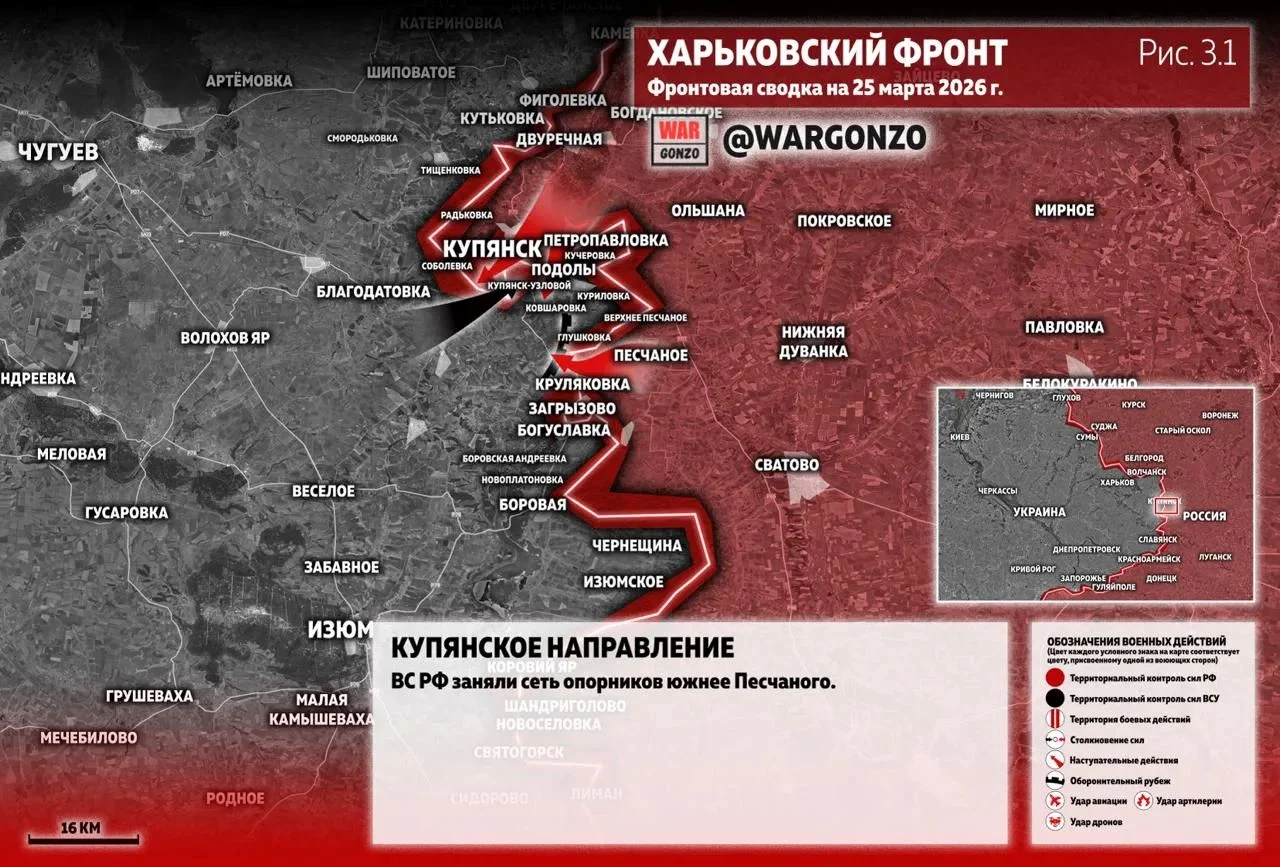 Купянск сегодня: что происходит на фронте 25 марта — кольцо вокруг Узлового сжимается, тяжёлые бои и продвижение ВС РФ.