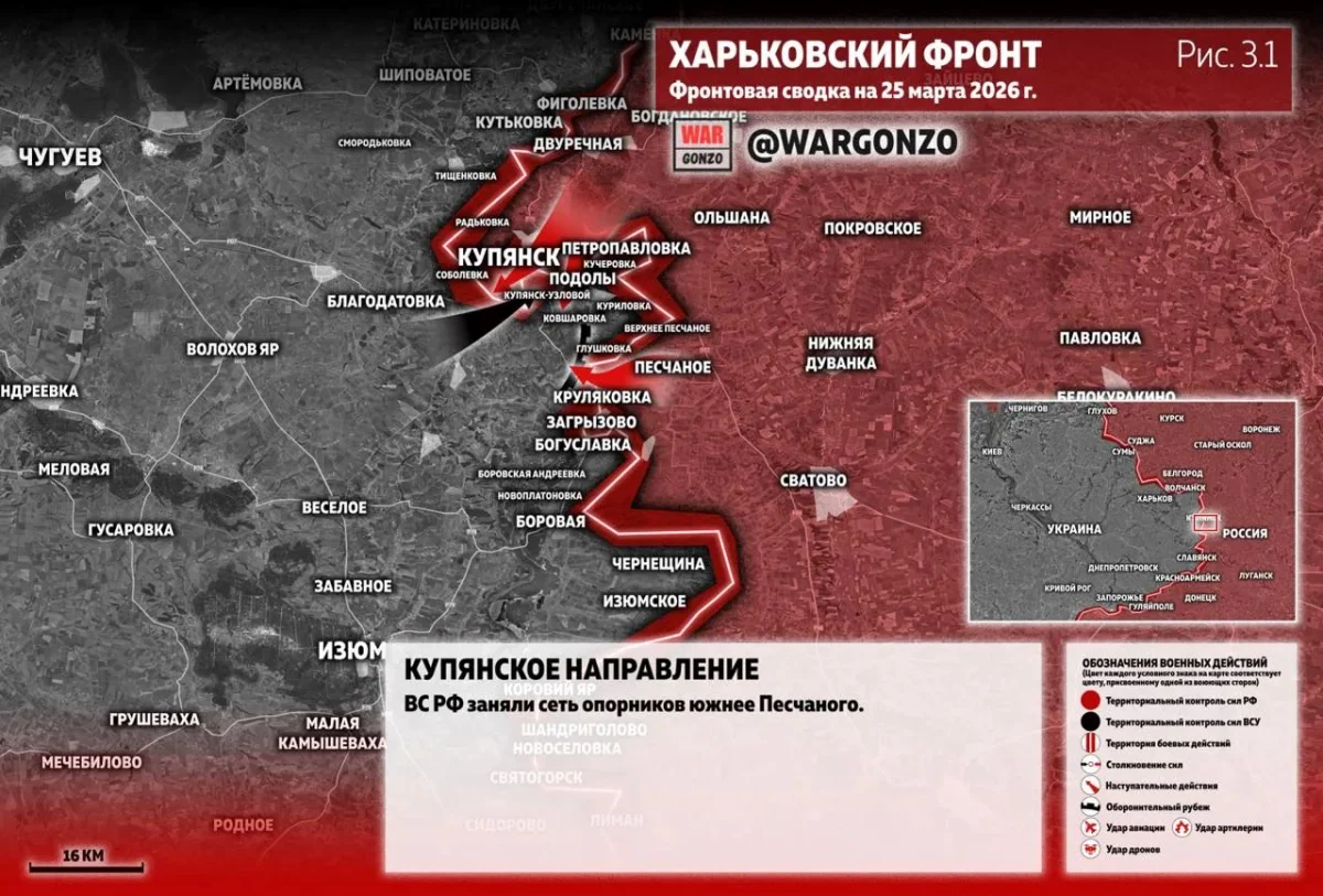 На севере Харьковской области инициатива также прочно удерживается Армией России. Министерство обороны РФ официально подтвердило освобождение села Песчаное (расположенного на границе с Шебекинским районом). Мотивированные подразделения ВСУ, направленные для удержания населенного пункта, были разбиты и отступили в Нестерное, попав под шквальный огонь артиллерии и дронов.