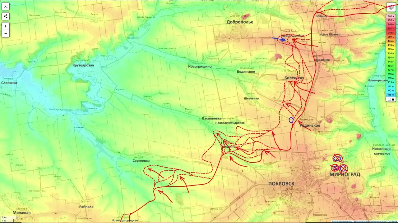 Вооружённые силы Российской Федерации планомерно расширяют зону мощного наступления в полосе ответственности группировки войск «Центр». Наиболее заметная динамика на Покровско-Добропольском направлении наблюдается в районе населённого пункта Гришино, где российские части уверенно закрепляются на новых рубежах.