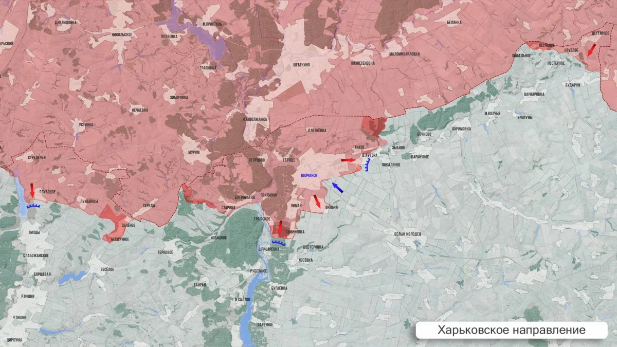 На Харьковском фронте инициатива остается за ВС РФ. Отмечено тактическое продвижение: на 500 метров на Липцовском участке и на 400 метров в Волчанске. На Купянском направлении линия фронта без существенных изменений, основное противостояние перешло в фазу «войны малых дронов».
