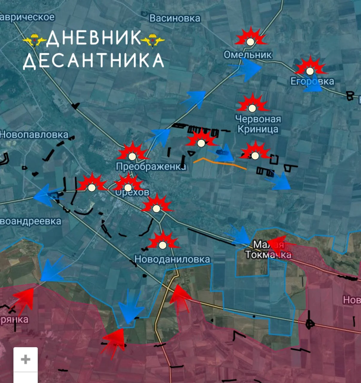 Обстановка остается объективно сложной. С 2023 года ВСУ превратили Орехов в мощный укрепрайон, а Малая Токмачка играет роль его «восточных ворот», за которые противник держится изо всех сил. Фиксируется кратное увеличение применения вражеских БПЛА всех типов, работающих как по передовой, так и по ближнему тылу ВС РФ.