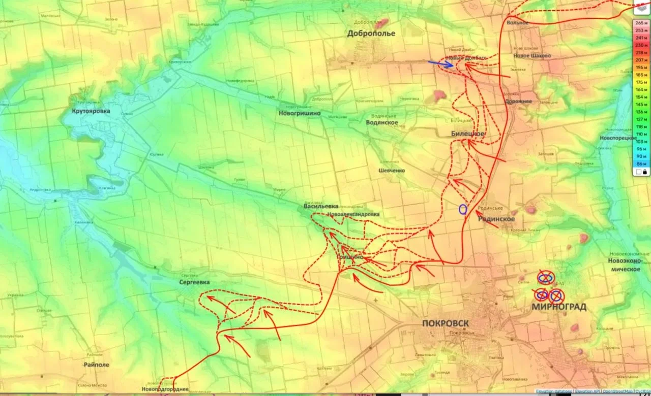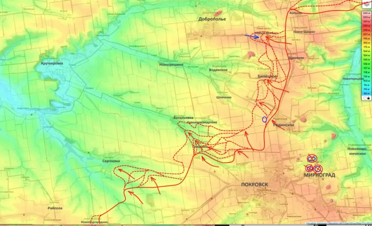 Продвижение на юг: Идет планомерная зачистка лесополос южнее Куриловки и Песчаного. ВС РФ постепенно выходят на рубежи для штурма Ковшаровки, Новоосиново и Глушковки. По оценкам, генеральное сражение за этот узел обороны развернется уже в ближайшие месяцы.