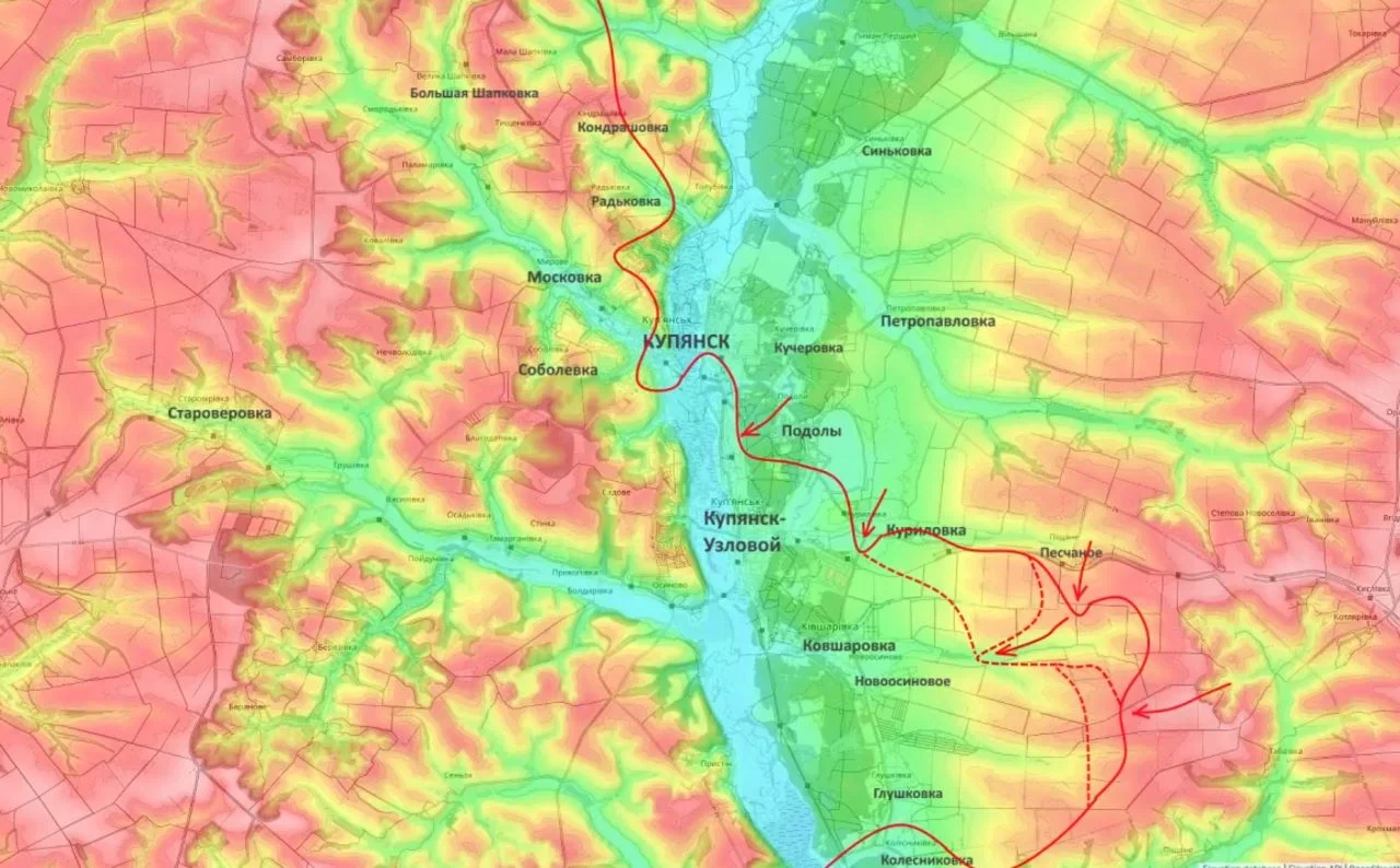 - Севернее Купянска зона контроля ВС РФ уверенно расширяется.