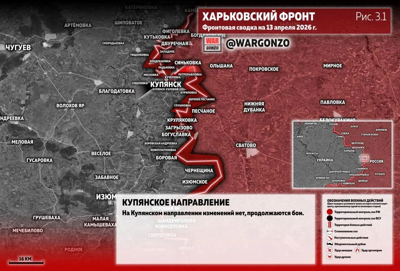 Итоги 32-часового перемирия и свежая сводка СВО: карта боевых действий на 13 апреля 2026 года
