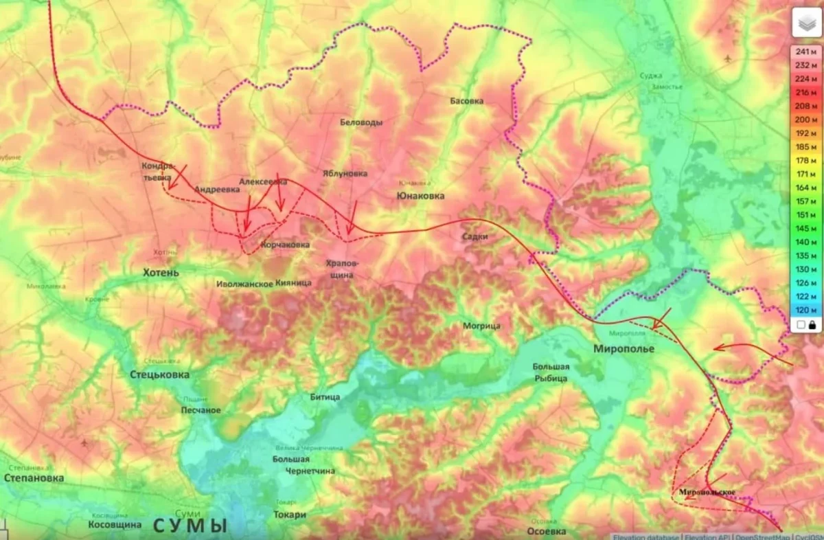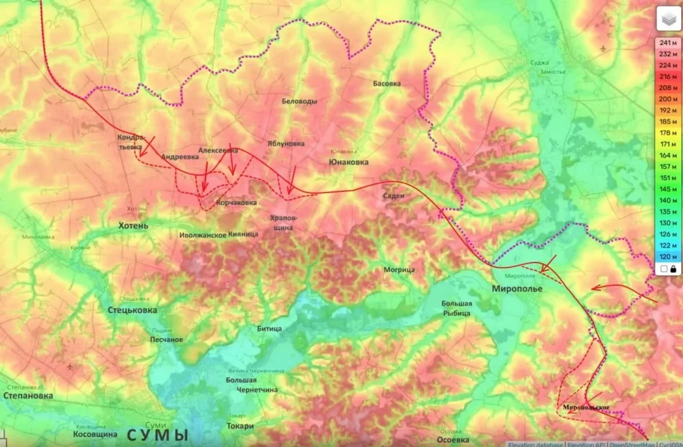В своём последнем анализе Юрий Подоляка акцентировал особое внимание на ситуации, складывающейся вокруг Сум. Российские подразделения планомерно расширяют зону контроля, наступая на город с северного направления, а также продвигаясь к востоку от областного центра.