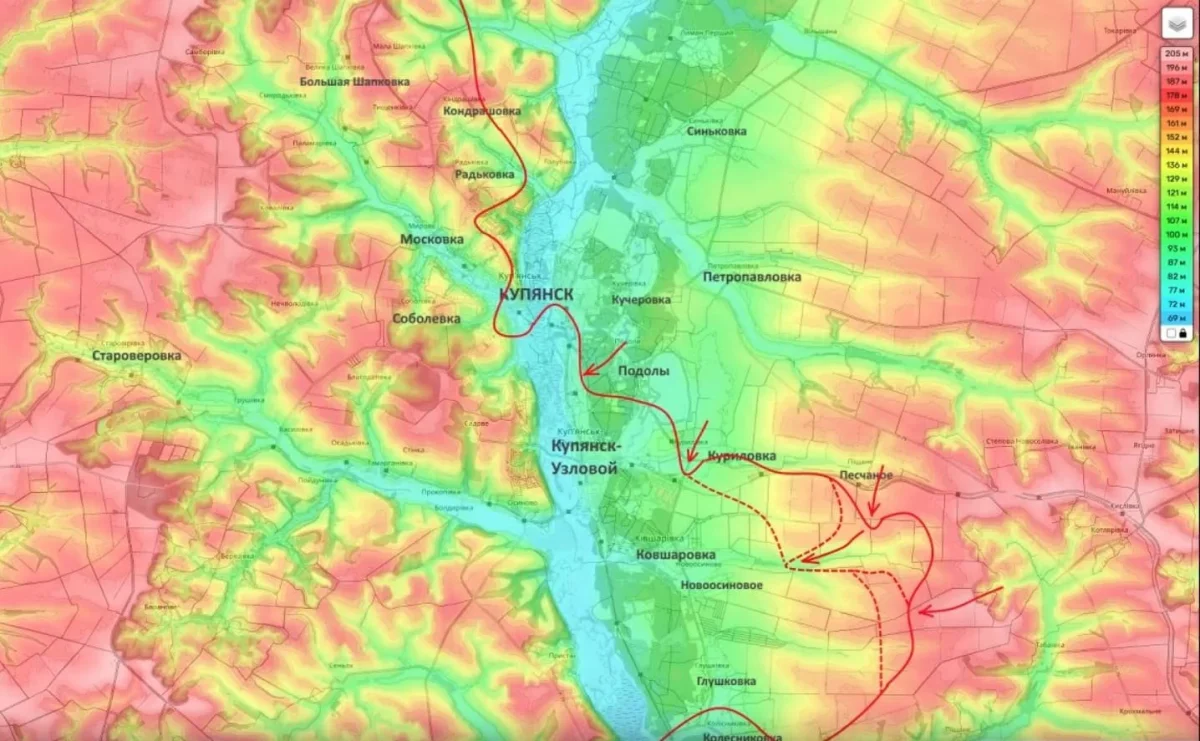 Параллельно боевые действия разворачиваются на левом берегу реки Оскол — на подступах к Купянску-Узловому, Ковшаровке и Новоосиново.