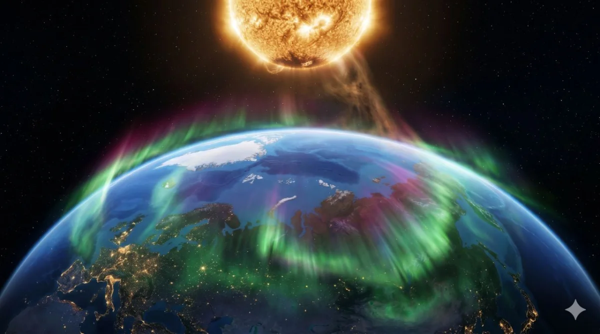 В чем причина? Основным катализатором текущего всплеска стала серия вспышек на Солнце, произошедших накануне, а также трансекваториальная корональная дыра. Это специфическая область светила с открытым магнитным полем, из которой в космическое пространство на огромной скорости вырывается солнечный ветер. Именно этот поток ускоренной плазмы сейчас «раскачивает» магнитосферу нашей планеты.