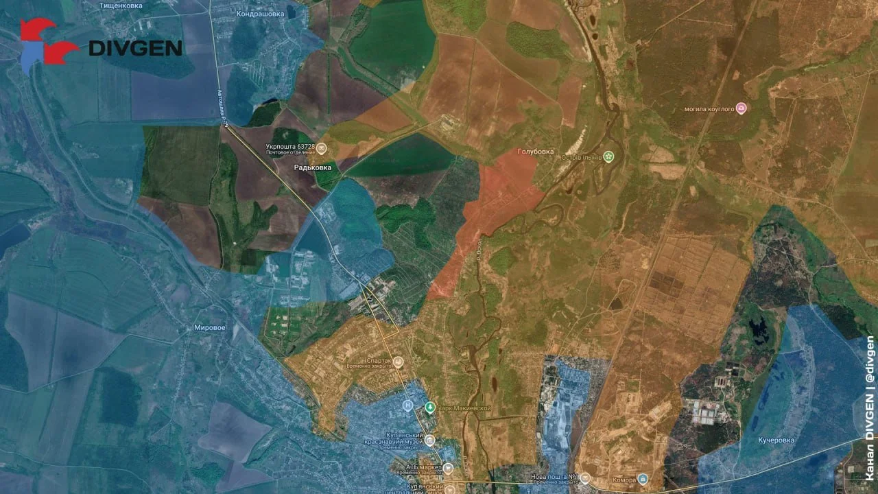 - Северный фланг: Российским войскам удается возвращать контроль над населенным пунктом Кондрашовка, а также зачищать так называемый «карман» между Голубовкой и Радьковкой. В то же время, вернуть территорию Московки пока не удалось — там идут вязкие бои.