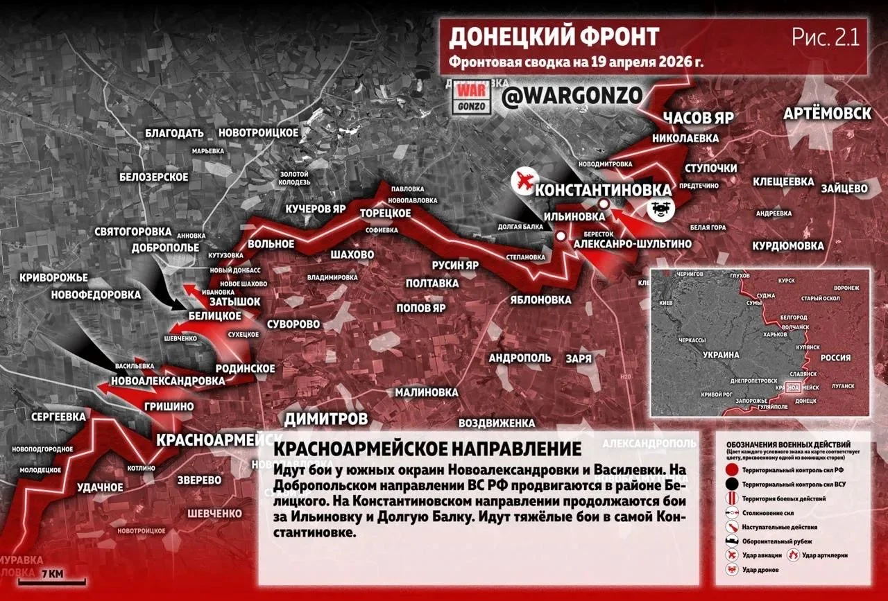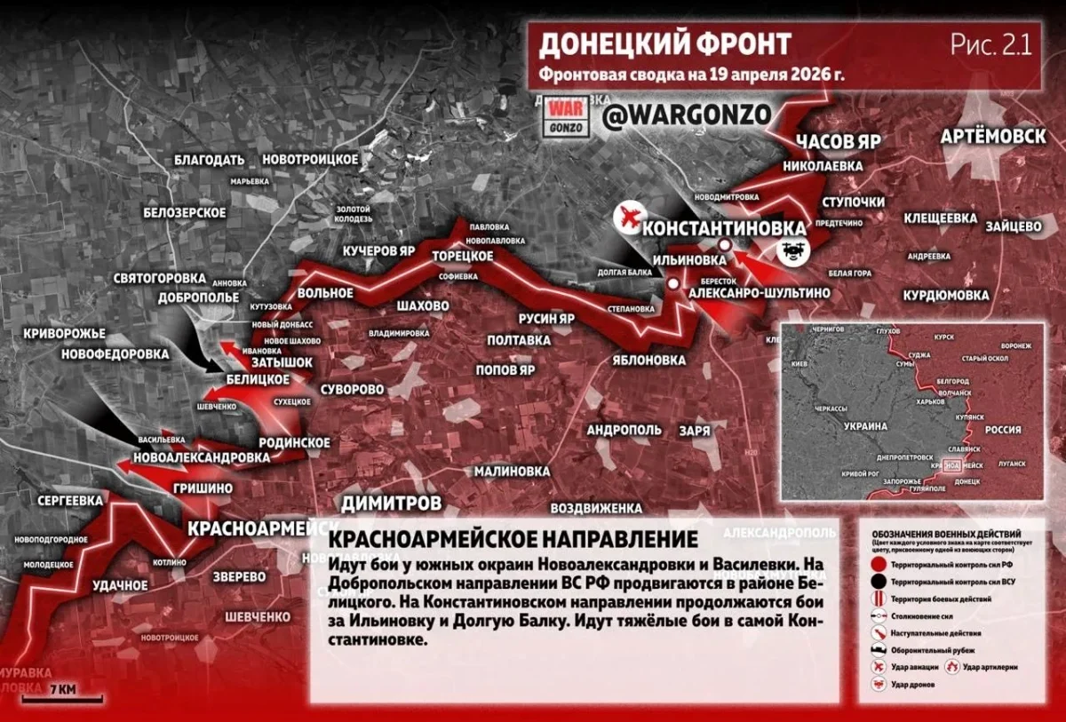 Итог: Ситуация на фронте к вечеру 19 апреля 2026 года демонстрирует устойчивое перехватывание инициативы российскими войсками.