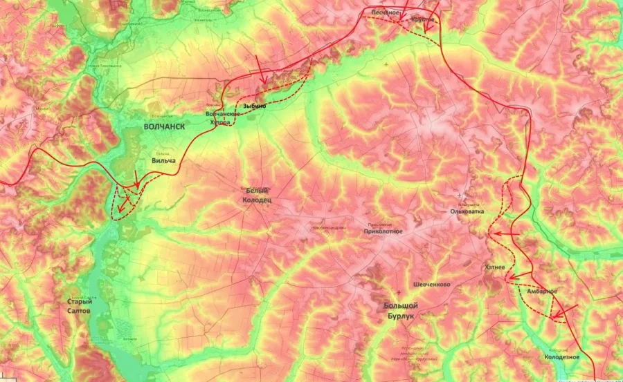 Волчанский узел: В зоне ответственности группировки «Север» зафиксирован серьезный прорыв. Опираясь на ранее занятые господствующие высоты в районе Волчанска, российские бойцы форсировали реку Волчья и освободили населенный пункт Охримовка. Формируется охват Белого Колодезя с двух флангов. ВСУ признают кризисность ситуации и спешно перебрасывают сюда резервы из-под Купянска.