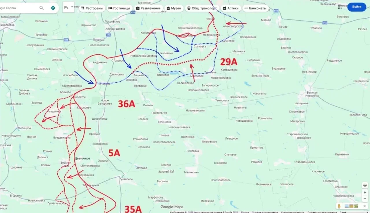 Несмотря на отчаянные попытки украинских войск организовать прорыв у Цветкового и Святопетровки, ВС РФ восстановили контроль над восточной окраиной Цветкового и взяли под физический огневой контроль трассу О-081344. Южнее Верхней Терсы наши подразделения рвутся к Горькому и Комсомольскому (Гуляйпольскому), закрепляясь на восточных окраинах последнего.