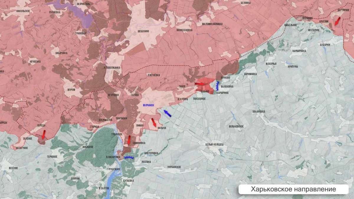 Украинское командование в спешном порядке стягивает резервы от Белого Колодезя к Покаляному, откуда пытается организовать контрудары на Волчанские хутора. Ожесточенные столкновения также зафиксированы западнее Караичного, у Зыбино, Бочково и севернее Охримовки.