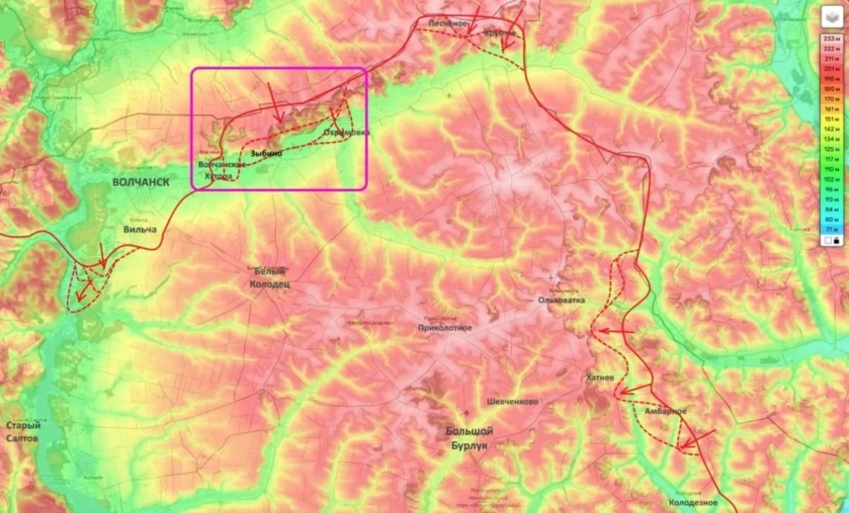 Вектор атак смещается к Охримовке, взятие которой позволит ВС РФ создать надежный плацдарм на правом берегу Волчьей для дальнейшего развития наступления.