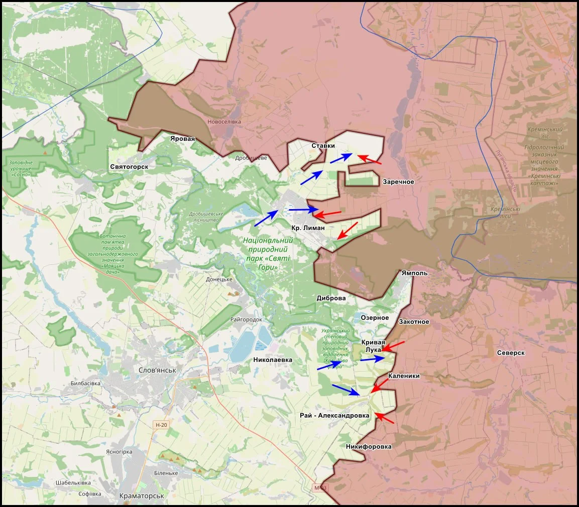 На восточной окраине Красного Лимана и к северо-западу от города продолжаются вязкие позиционные бои. Полного контроля над Дробышево пока достичь не удалось.
