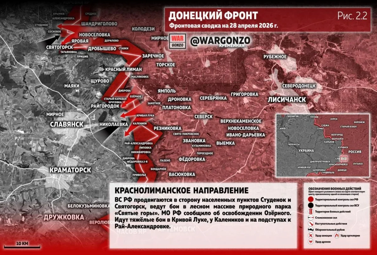 В самом Красном Лимане идут позиционные бои, все попытки противника вклиниться в наши порядки жестко пресекаются.