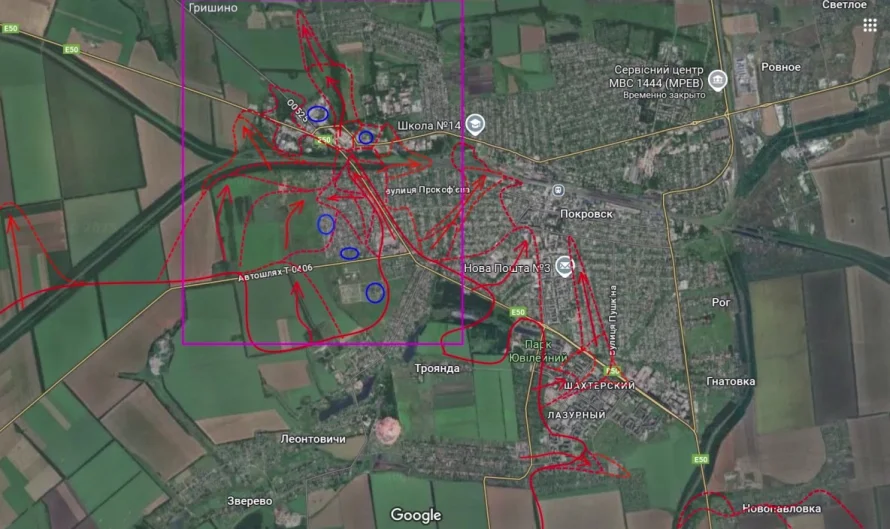 - Бои за Покровск: В самом Покровске штурмовые группы продавливают оборону ВСУ на северо-западе города, продвигаясь в направлении Гришино. Несмотря на то, что в западной промзоне города еще остаются очаги сопротивления, российские части обходят их по лесополосам, беря в клещи. Также отмечаются тактические успехи в центральной части Покровска и к востоку от города, где идет зачистка дачных массивов.