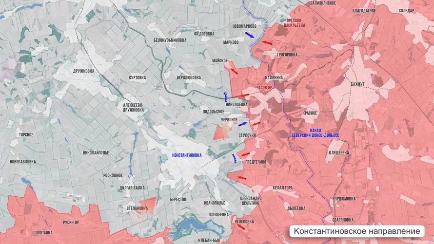На Северском направлении ВС РФ продолжают улучшать свои тактические позиции. Южнее города идёт успешное выравнивание линии боевого соприкосновения (ЛБС) и расширение зоны контроля в районе Кузьминовки.