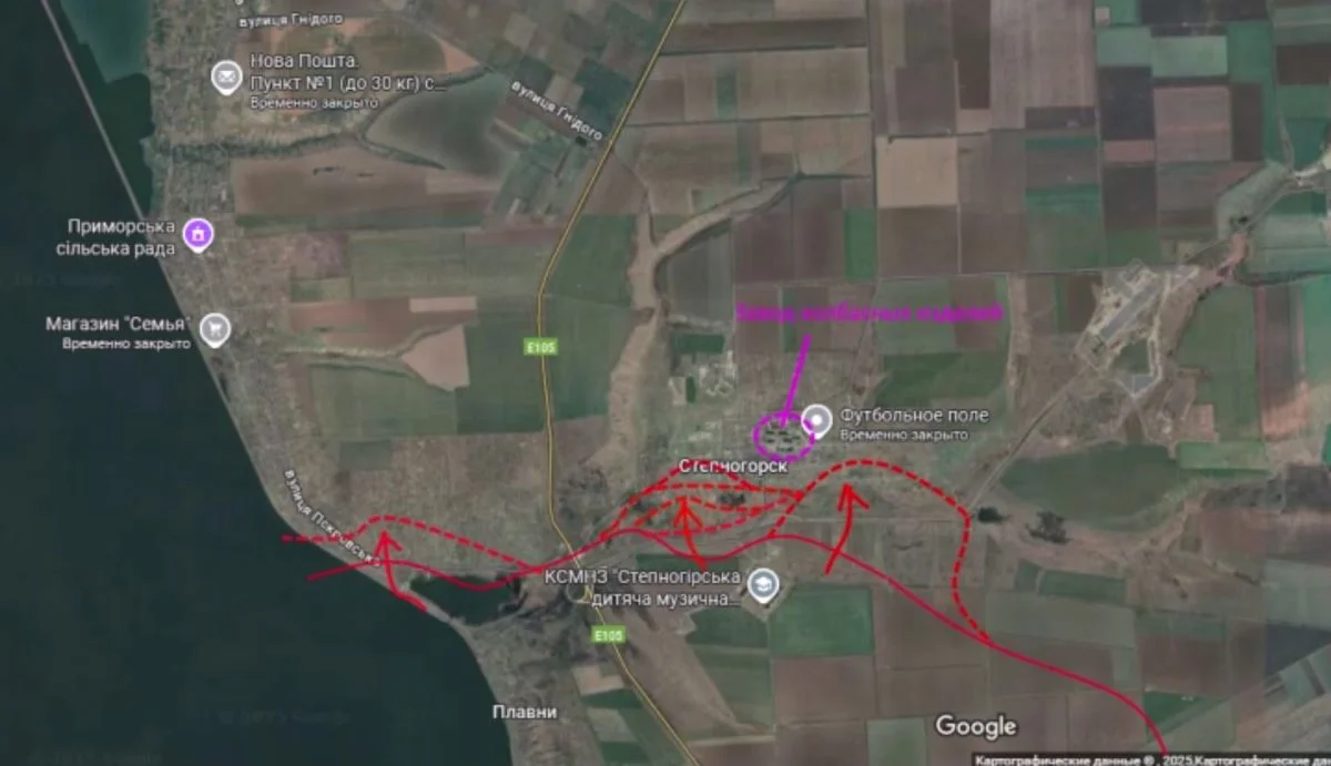 На южном участке фронта, в зоне ответственности группировки «Днепр», продолжаются ожесточённые бои за Степногорск. Российские штурмовые группы вгрызаются в оборону противника, обходя с востока и запада ключевой узел сопротивления ВСУ в районе завода «Бердянские колбасы». Хотя основное сражение за этот объект ещё впереди, уже есть тактические успехи и продвижение вперёд.