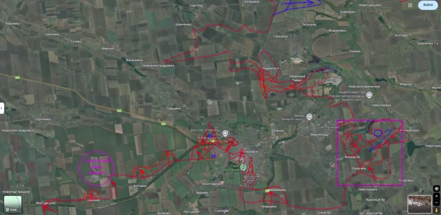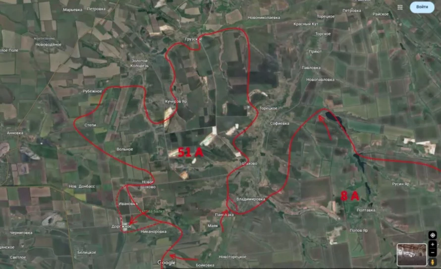 Параллельно с этим российские части почти полностью зачистили северо-западную промзону и движутся в сторону Гришино. Навстречу им продвигаются подразделения 51-й армии южнее Родинского.