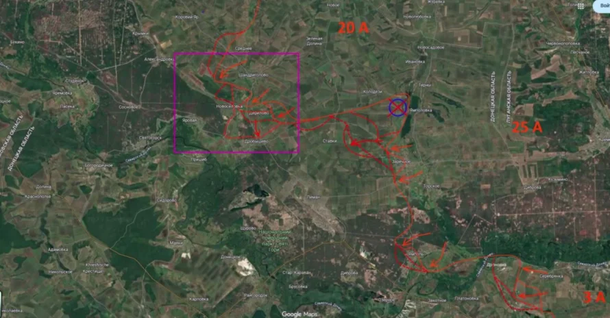 На Лиманском фронте продолжается наступление в районе Дробышево и Новоселки. Российские войска вошли в северную часть Дробышево и пытаются выбить ВСУ из села Старки, чтобы охватить Лиман с севера и северо-запада.