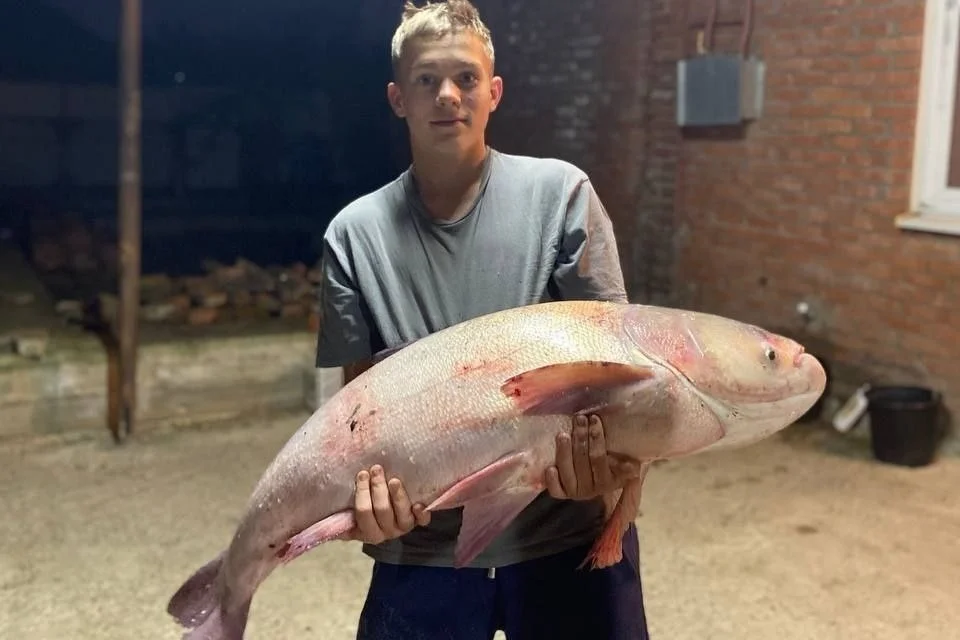 Рыба-монстр с Кубани: школьник вытащил из водоёма 20-килограммового толстолобика