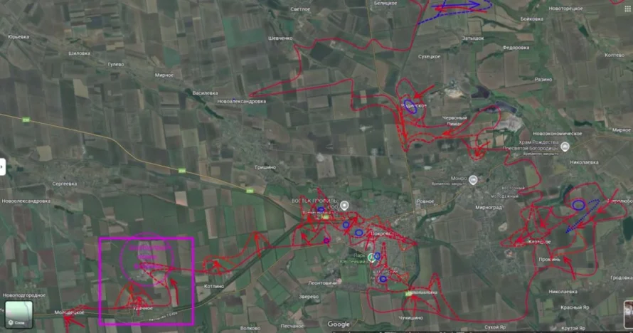 На фоне событий в Покровске развивается наступление и на Мирноград — второй по важности город агломерации. Российские части зашли на северные, восточные и южные окраины города, пытаясь рассечь группировку ВСУ на две части.
