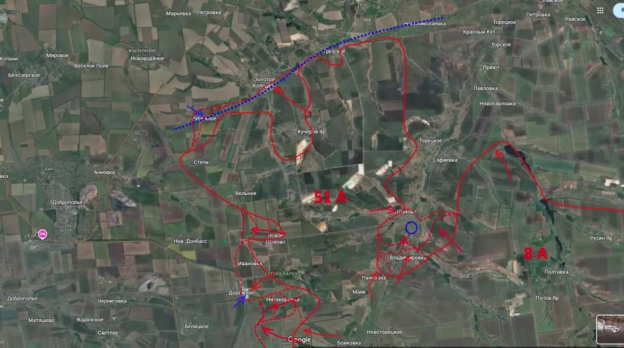 - Волчанское направление: Здесь оборона ВСУ также "начинает трещать". Фиксируются заметные продвижения в самом Волчанске и в районе Синельниково. Российские части пытаются форсировать реку Волчья в районе Волчанских Хуторов. Стратегическая цель — продвижение на Белый Колодезь для последующего окружения Великобурлукского выступа совместно с купянской группировкой.