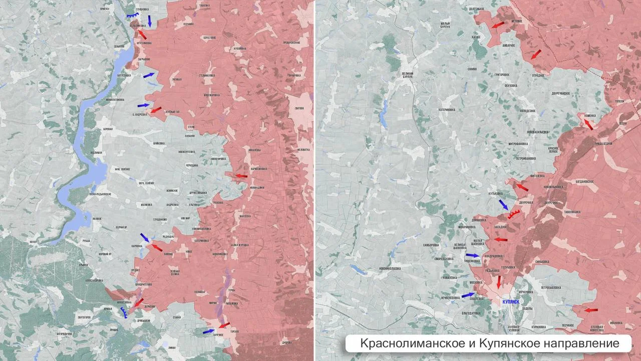 На севере участка российские войска значительно продвинулись в районе недавно освобожденной Бологовки и в районе Двуреченского. Расширение этого плацдарма крайне важно для развертывания группировки на правом берегу реки Оскол и наращивания давления на Купянск.