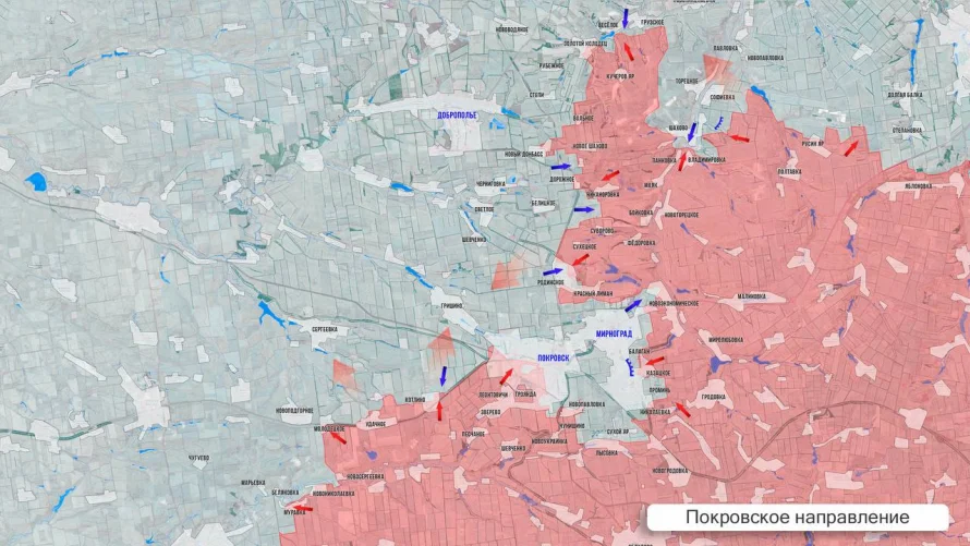На Покровском фронте не стихают ожесточенные бои за контроль над Покровско-Мирноградской агломерацией. В самом Покровске российским подразделениям удалось вытеснить ВСУ за линию железной дороги, отрезав противника от снабжения со стороны Гришино.