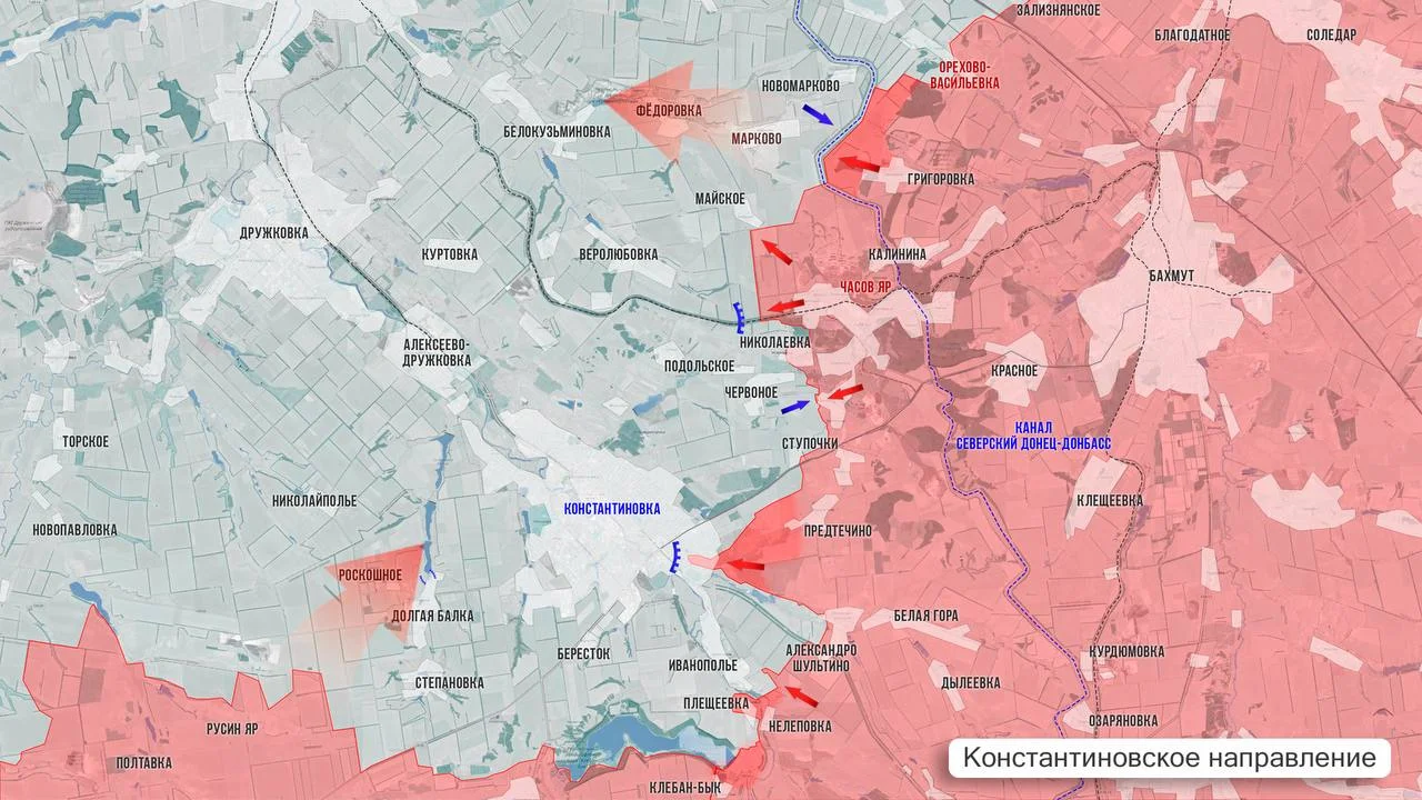 На Константиновском участке фронта продолжаются бои за Иванополье, где российские войска продвигаются вдоль железнодорожной линии. Отмечается работа разведывательно-диверсионных групп ВС РФ, которые постепенно проникают на территорию Константиновки.