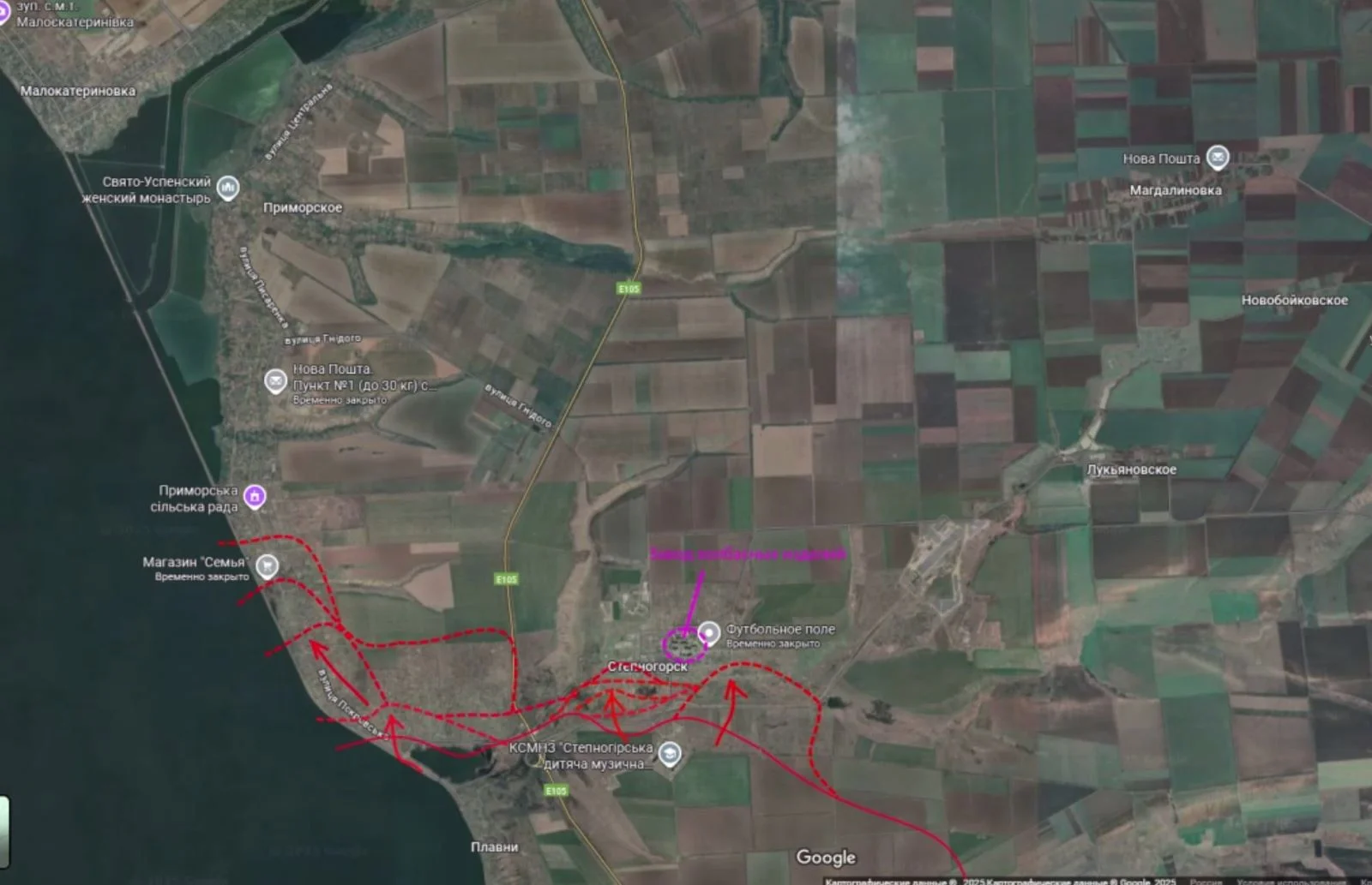 На Южном участке фронта, в районе Степногорска и Приморска, части ВС РФ продолжают методично "прогрызать" оборону противника. Как отмечает Подоляка, в Приморском российские подразделения занимают все новые позиции.