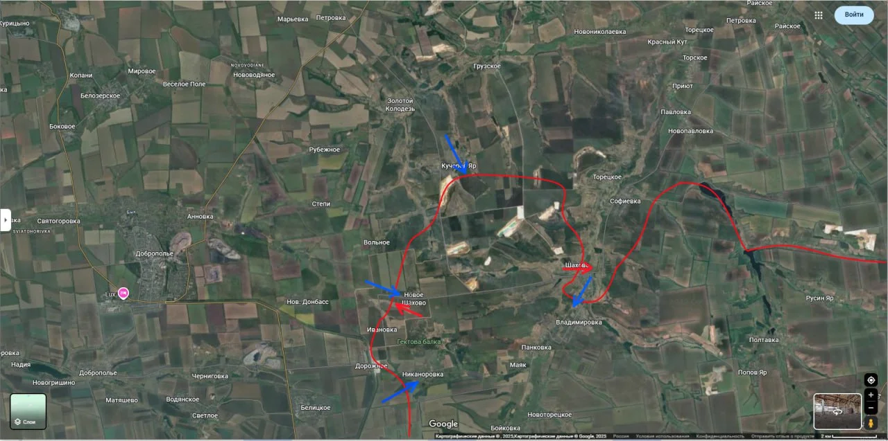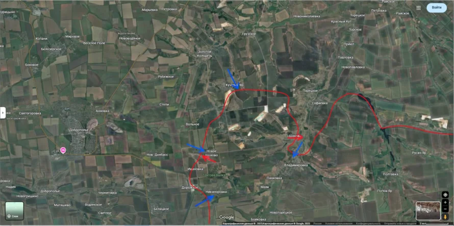 После этого удары сместились восточнее: боевые группы ВСУ предприняли попытку захода во Владимировку и Панковку. Одновременно фиксировались активные действия противника в районе Кучерова Яра — здесь украинские силы смогли оттеснить российские подразделения и перейти к продвижению в сторону Никаноровки и Нового Шахово.